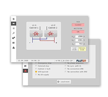 Withdrawable rectifiers are equipped with microprocessor control and diagnostic system based on SOTA® controller and MC-POWER module. HMI is provided by an operator panel in the form of 7-inch TFT touchscreen display, allowing the user to exchange data with the control system.