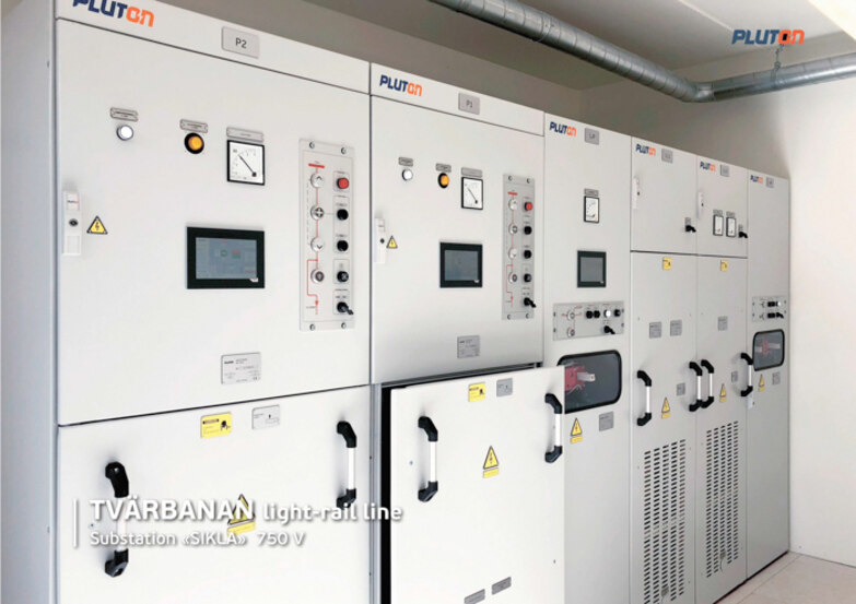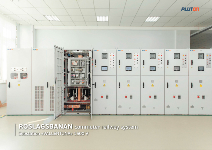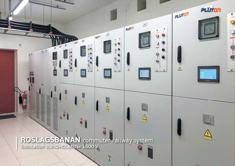 In 2022 PLUTON provided powerful 12-pulse voltage-controlled rectifiers VCR with a rated current of 2.3 kA and voltage of 1500 V and improved control algorithms for Vallentuna and Lindholmen, the new traction substations on the Roslagsbanan train line. Within the frame of the project, PLUTON implemented for the first time the IEC 61850 Power Industry Communications Standard in the substation's specific environment. It provides integration of all equipment and systems into a unified communication network for prompt and safe control, as well as for the integration into the control system of other levels.